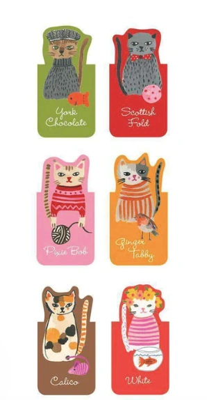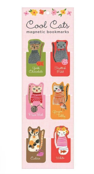 Galison's Cool Cats Magnetic Bookmarks offer a charming collection of whimsically illustrated feline friends. The six die-cut magnetic clips mark your pages while adding a touch of fun and flair to any book or magazine.