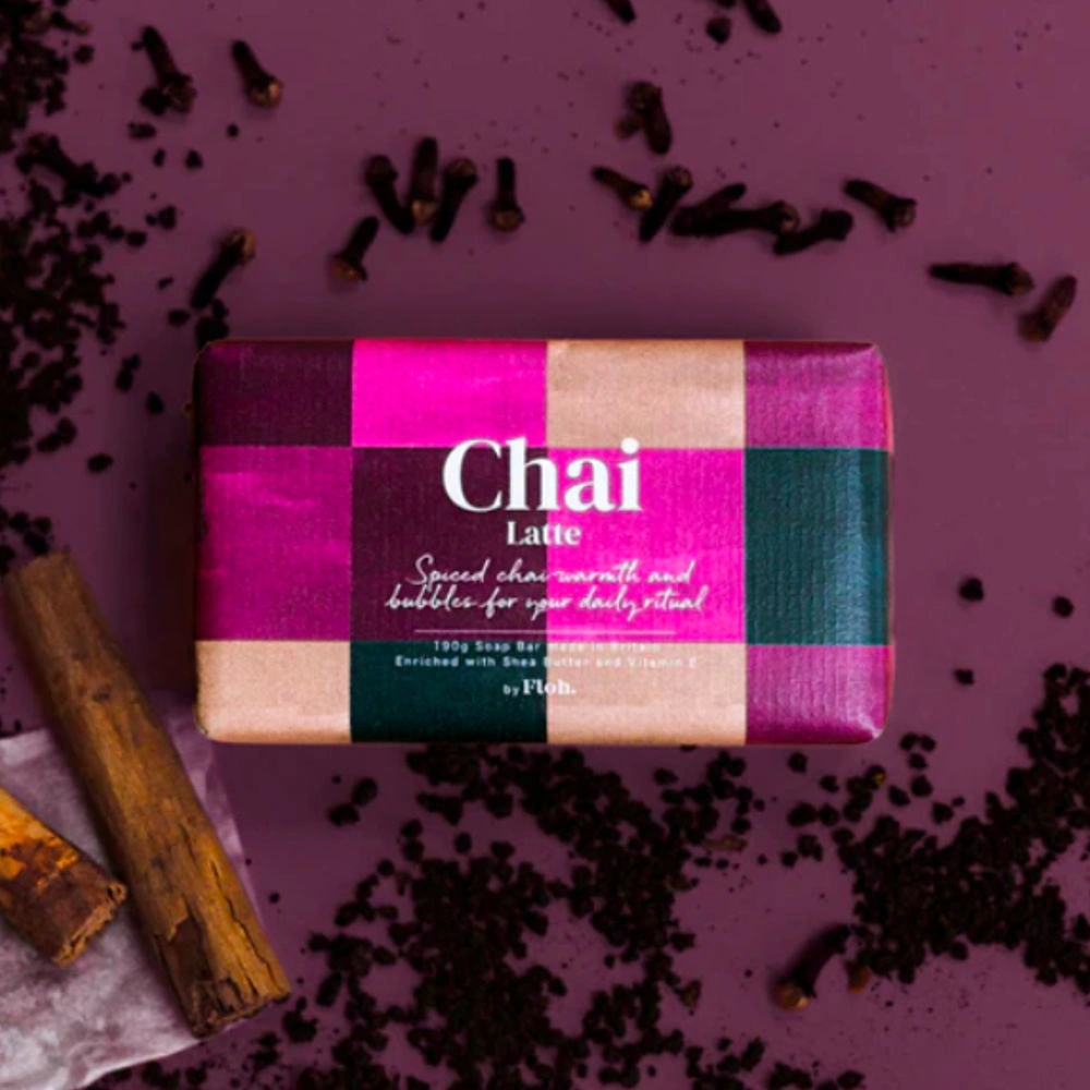 Floh Chai Latte Soap Bar - Indulge in a luxurious 190g soap bar, proudly crafted in Britain. Enriched with nourishing shea butter, Each 100% triple milled soap bar is made with traditional methods using pure vegetable oil for a rich, long-lasting lather.